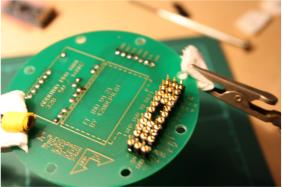 Multiwii QuadrocopterHilfreicher Link: http://www.rc-network.de/forum/showthread.php/238611-DIY-Multi-Wii-QuadrocopterMein Multiwii Copter ist ein Quadrocopter den ich selbst, mit Tipps von Vereinskollegen, gebaut habe.Hier ist die Seite von “warthox” einem meiner Vereinskollegen, der mir sehr geholfen hat und der beste Quadrokopterpilot ist den ich kenne, und von einem anderen Vereinskollegen, der mir ebenfalls zur Seite stand. Und ich möchte auch allen anderen danken die mir bei meinem Quadrocopter geholfen haben.Ein Multiwii Copter muss nicht gleich ein Quadrocopter sein, es gibt in ihn in vielen Variationen wie z.B. Hexacopter, Oktocopter, Tricopter, y6-Copter,….Er heißt deswegen Multiwii Copter, weil beim Bau des Copters ein Bauteil der Wii Konsole benötigt wird(es gibt aber auch andere Möglichkeiten), nämlich das „WII Motion Plus“, aus dem „WII Motion Plus-Modul“ wird die Platine mit den Gyros, also den Kreiselsensoren, die später die Fluglage steuern, ausgebaut.Den MWC (Multiwii Copter) kann man in verschiedenen Größen bauen, so wie man es haben will, er muss nur entsprechend motorisiert werden. Der Quadrocopter hat noch ein spezielles Bauteil, nämlich das Arduino-Board, auf dieses Board wird später die Steuersoftware für den MWC geloaded und an das Arduino-Board wird später auch das WII Motion Plus angeschlossen. An den MWC kann auch ein Beschleunigungs Sensor sowie Barometer,Magnetometer oder GPS, u.v.m. angeschlossen werden.Die Steuerungssoftware kann dann selbst konfiguriert werden, d.h. welchen Coptertyp, Failsave, etc.Dann gibt es noch ein Konfigurationsprogramm(das GUI), dort wird der Quadrocopter an den PC angeschlossen(man braucht dazu das FTDI Basic Breakout) und kann dann die PID-Werte und noch andere Werte auslesen, auch kann man den MWC kalibrieren und die Sensoren testen.Bei dem MWC kann man alles selber bauen, das ganze Frame, die Elektronik(bis auf das Arduino-Board oder die WII Motion Plus-Platine).Es gibt aber auch Frames, fertige Platinen, usw. zu kaufen.Der MWC ist fast schon ein Muss für Modellflieger mit Erfahrung und die gerne selber Flugmodelle bauen und fliegen wollen.Download MultiWiiV1_7Download MultiWii_1_8_patch1Download MultiWii_1_8_patch2Download MultiWii_1_9Multiwii Quadrocopter BauberichtSchritt 1: Material (Mein Setup)•Arduino Pro Mini 328 - 5V/16MHz - 1x •FTDI Basic Breakout - 1x•Wii Motion Plus - 1x•TURNIGY Plush 12amp (2A BEC) BESC - 4x•Suppo A2212/13 1000KV Brushless Outrunner - 4x•Alu-Vierkantrohr - 1cm•Quadrocopter Centerplate mit onboard Stromverteiler 2er Set - 1x•10"x4.5 GF Propeller Set Orange Set 4 Stück - 2x doppelt ist hier besser ;)•10"x4.5 GF verst. Propeller grün Set 2 CW and 2 CCW - 2x und hier ebenfalls ;)•Empfänger•Akku (bei mir 2200mAh)•Optional: LED - Turnigy High Density R/C LED Flexible Strip-Red (1mtr)•Optional: LED - Turnigy High Density R/C LED Flexible Strip-Green (1mtr)•Passende Schrauben•MWC Board•StiftleistenSchritt 2: das MWC-BoardUm das MWC Board zu bestücken brauchen wir einmal das Arduino-Board, das Wii Motion Plus, Stiftleisten und natürlich Lötzinn und einen Lötkolben.Ich habe damit angefangen die Stiftleisten einzulöten:<-- Und auf dem ArduinoTipp: Ich habe einen Servostecker ohne Kabelgebaut, in den, ich die Stiftleisten in 3er Pärchen gesteckt habe.Somit werden sie gleichmäßig verlötet.Nun kommen wir zum Wii Motion Plus.Nachdem man die hartnäckige Hülle geöffnet hat, schneidet man das weiße Kabelband und den Stecker ab.Ich kann hierzu ein Video empfehlen (zwar wird das WMP für das PARIS-Board vorbereitet,die Art ist aber genau gleich).Wenn das Wii Motion Plus wie im Bild hier unten liegt wird folgendesgetan:1)Das WMP hat 8 nebeneinanderliegende Lötfelder auf die die Kabel kommen -1. und 2. Feld wird gebrückt und ein Kabel wird verlötet -das 3. Lötfeld bekommt auch ein Kabel -das 4. und 5. Lötfeld wird freigelassen -auf das 6. Feld kommt wieder ein Kabel -das 7. und 8. Feld wird gebrückt und bekommt ein Kabel2) - das 1. Kabel wird an “VCC” gelötet - das 2. an “SCL” - das 3. an “SDA” - das 4, an “GND”Zwischen VCC, also +, und SCL muss noch ein 2k Widerstand gelötet werden, der als Pullup dient.Im Sketch müssen dann die internen Pullups deaktiviert werden. Das gleiche mit SDA.Das WMP wird nun z.B. mit Schaumstoff, oder mit etwas anderem, auf das Board auf dieeingezeichnete Stelle geklebt.Als nächstes wird das Arduino auf die Pins auf dem Arduinofeld gesteckt und auch verlötet.Die Pins für das FTDI würde ich schon vorher an das Arduino anbringen.Nun ist das Board fertig!Nun kommen wir zur Software.Auf das Board wird nun in den folgenden Schritten, die Software gespielt.Dazu braucht man die Arduino-Software(0022 oder neuer).Und den Multiwiicode(auf meiner Seite downloadbar).Als erstes Steckt man den FTDI Adapter auf die Pins am Arduino(siehe Foto)Dann wird der FTDI an den PC angeschlossen.Nach der Treiberinstallation(bei WIN7 automatisch) geht es los.Wir öffnen das Arduinoprogramm.Nun auf “Tools”->”Board”->”Arduino Pro or Pro Mini (5v, 16MHz)w/ ATmege328”Danach “Tools”-> “Port”-> und nun den Port wählen an den das Board angeschlossen ist.Jetzt geht man auf “Open”-> in den Ordner vom Multiwiicode->”Multiwii_1_8_patch2”->”MultiWii_1_8_patch2.pde”(Doppelklick). Bei den neueren auf die .ino Datei, welche sich nur mit Arduino 1.0 oder höher öffnen lassen.Nun in den Reiter “config.h” wechseln, den Rest brauchen wir nicht.Dort stellt man unter “/* The type of multicopter */”, die Art des Kopters ein, indem man die // entfernt.Bei mir ist jetzt QUADX gewähl.Zum vergrößern auf das Bild klicken.Auch das Mindestgas kann eingestellt werden unter MINTHROTTLE.Nun kann man Failsave, Motor Stop, etc. regeln (überall steht erklärt, was man tun kann)Schritt 3: Die SoftwareJetzt kommen wir zum GUI, der Konfigurationssoftware.Als erstes in den Ordner des Multiwiicodes ->”MultiWiiC